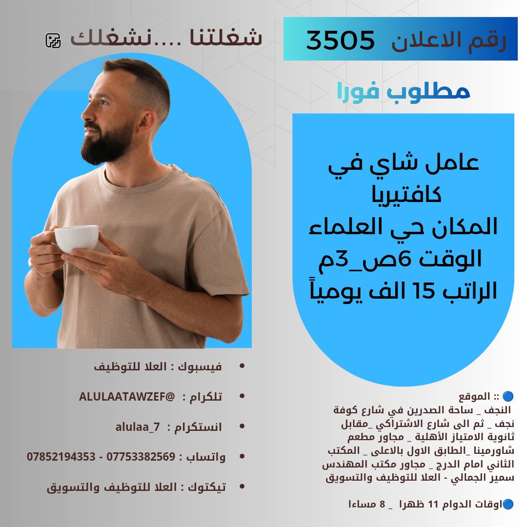 نحن العلا للتوظيف والتسويق، شركة مسجلة رسميًا نسعى لتقديم حلول متكاملة في مجالات التوظيف والتسويق الرقمي. نؤمن بأن نجاح عملائنا هو انعكاس مباشر لنجاحنا، لذلك نعمل بشغف واحترافية لتقديم خدمات عالية الجودة تساعد الأفراد والشركات على تحقيق أهدافهم والوصول إلى جمهورهم المستهدف بأفضل الطرق.
